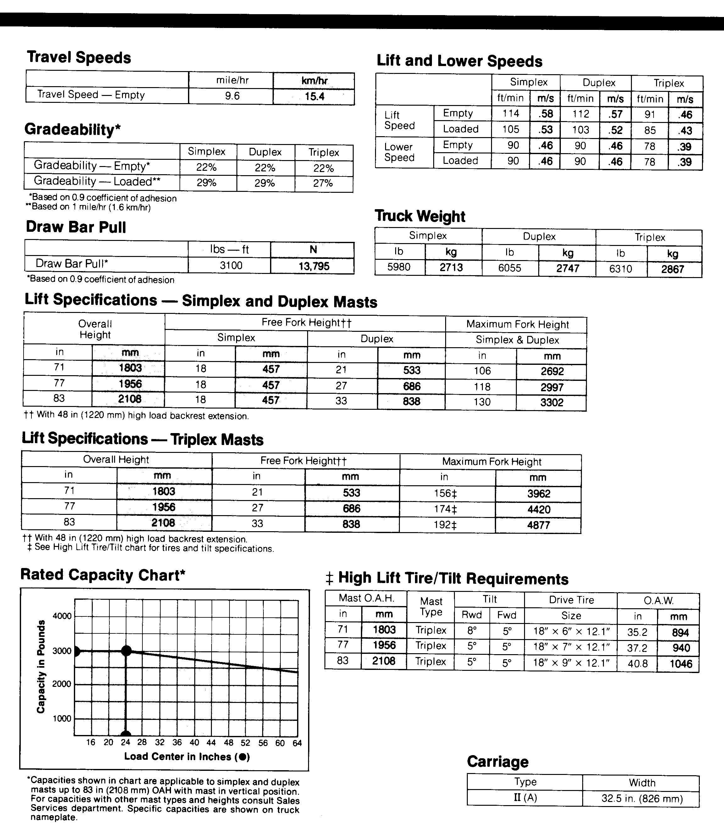 TYPICAL FORK TRUCK SPECIFICATIONS
