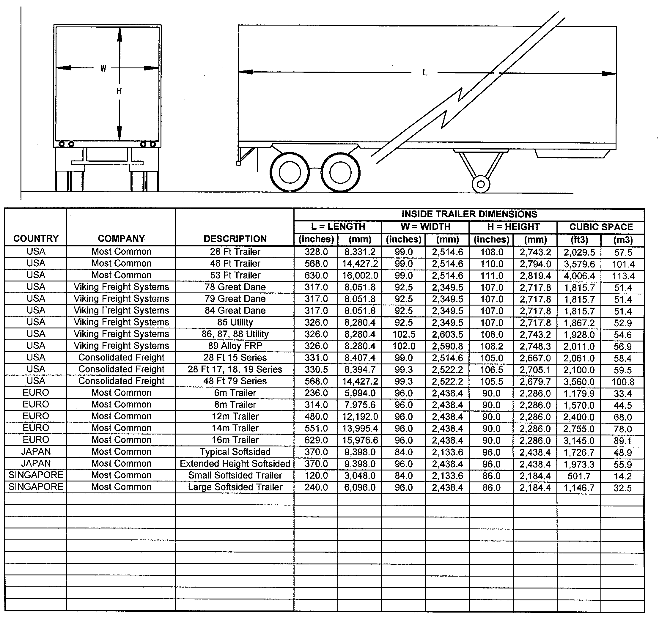 TYPICAL TRUCK TRAILER DIMENSIONS